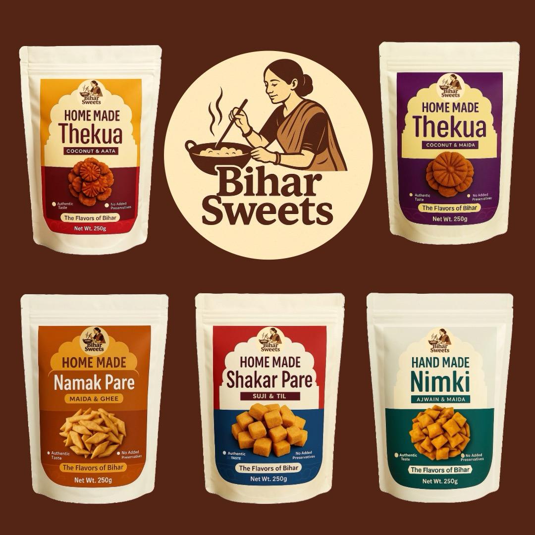 In the villages of Bihar, where kitchens glow with the aroma of jaggery and ghee, a tradition was born—of love, flavor, and togetherness. Sweets like Thekua, Nimki, Namak Pare, and Shakar Pare weren’t just snacks—they were memories.